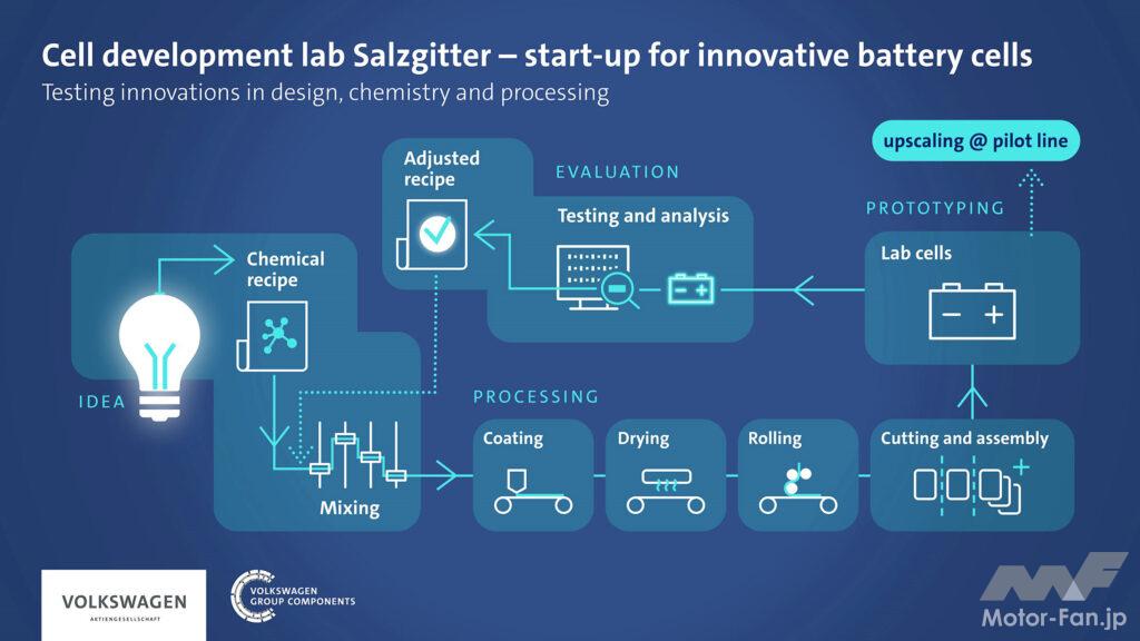 VWグループは、2019年に設立したVWグループコンポーネントが、ドイツ・ザルツギッターに最先端のバッテリーセル研究所を設立したことを発表した。これによりバッテリー技術の知識をさらに拡大し、独自のEV用バッテリーセルの開発と製造に向けて、次のステップを踏み出して行く。2025年以降、VWユニファイドセル(統合セル)はザルツギッターの生産ラインからロールオフされる予定である。将来的には、約250人の専門家が合計4つの研究所でセル開発、分析、およびテストの分野で研究を行う。グループは施設に約7000万ユーロを投資している。
