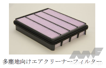 - 多塵地向けエアクリーナーのフィルターは、ろ材の繊維の太さや繊維間の距離を適正化することで、塵などのフィルトレーション性能が従来比25%※3向上している。