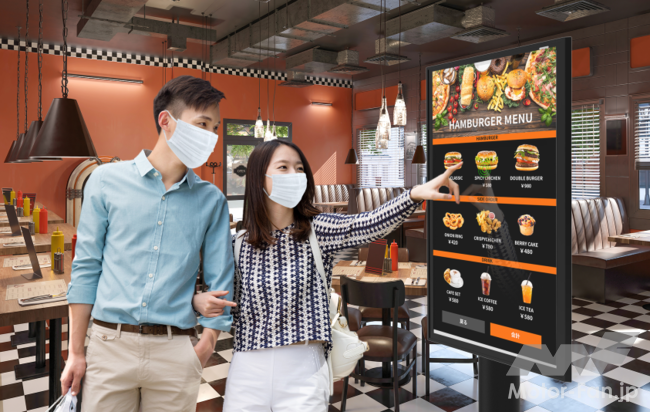 サイズは、15インチ程度の中型から、55インチ程度の大型まで、幅広く展開が可能。店舗のセルフオーダー端末、公共施設・商業施設の受付端末や案内用デジタルサイネージなどに搭載することで、さまざまなシーンにおける“非接触”ニーズに応える。そのほか、高い水準の衛生管理が求められる食品・薬品工場や手に油や汚れが付着しやすい生産現場などで使用する機器にも応用することが可能。