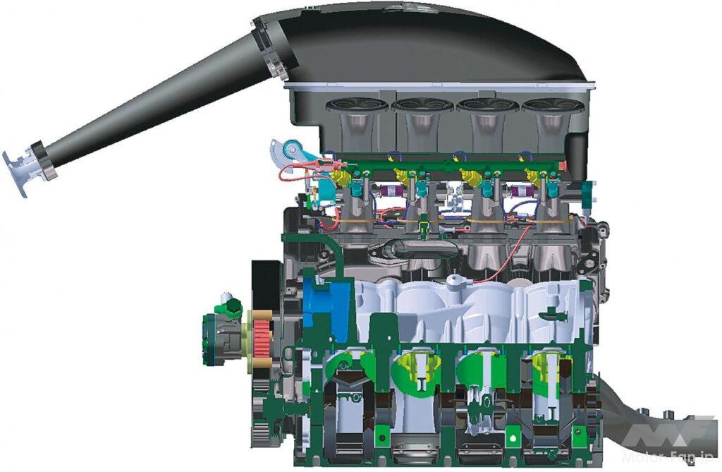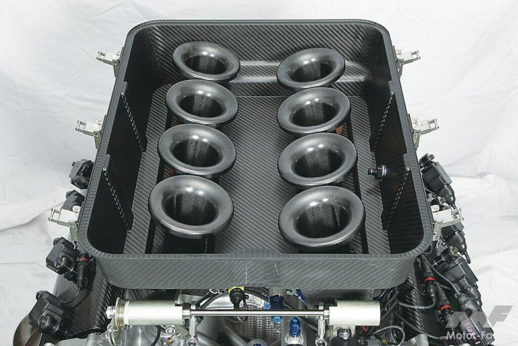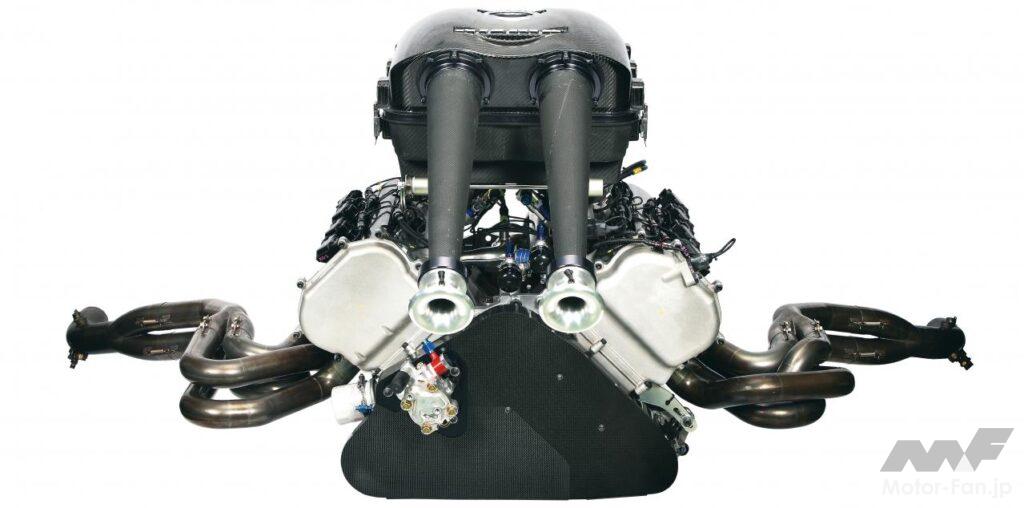 年間10戦に対し、1台あたり年間2基の使用量制限が課される。ざっと計算して5000kmの耐久性が必要。最高回転数は7500rpm付近。吸気リストリクターの位置から、エンジンが後方に搭載されていることがわかる。