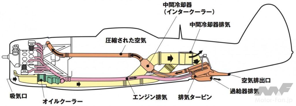 B-17やB-29といった迎撃の難しい高高度を飛ぶ大型爆撃機への装備は無論、それらを護衛したり直接長距離侵攻を目的とした戦闘機にも排気タービンが装備された。しかし多発機ならまだしも、掲載したP-47戦闘機の側面視から理解できるように、単座機への装備は1000°Cに達する高温の排気がパイロットの至近を通らぬよう配慮する必要性、できるだけ排気やタービンで圧縮された空気の温度を低下させたいことから長大となったダクトと中間冷却機(インタークーラー)なども内蔵させる必要性から非常に大きな機体となった。それでも過熱問題に悩まされたという。側面視ではわからないが実際には排気および空気ダクトはコクピットをはさんで2本づつある。
