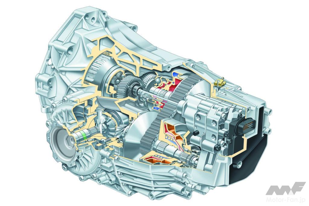 アウディ・マルチトロニック。縦置きでチェーンによるバリエータユニットを備えるが、基本的に前輪駆動思想。
