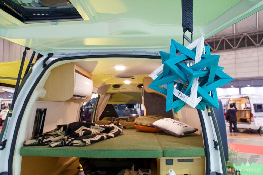また、「ジャパンキャンピングカーショー2023」での展示にあたっては、前日から設営に参加し、私物のキャンプ・ギアを並べるなど、このクルマに対して熱い情熱を注いでいる。これは小山さんが、クルマとのお洒落なキャンプを、とりわけ若い世代に広めたいという想いがあるからだ。
