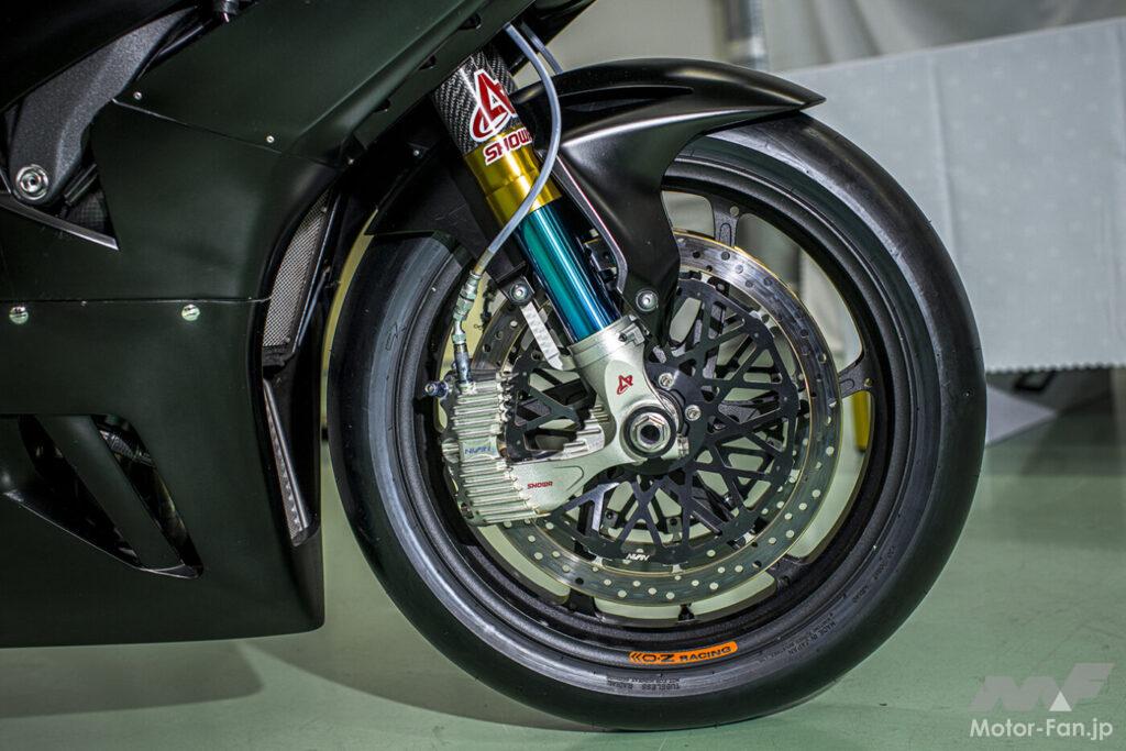 「従来の2輪の常識ではあり得ない構成ですが、ショーワとニッシンの技術者はハーモナイズドファンクションデザインに新しい可能性を感じたんです。そこで、強度や剛性、熱伝導などを解析してみたところ、この構成でも正立することが判明しました。現在は社内で実走テストを行っている段階で、2026年には全日本選手権、2027年には世界選手権に投入したいと考えています」