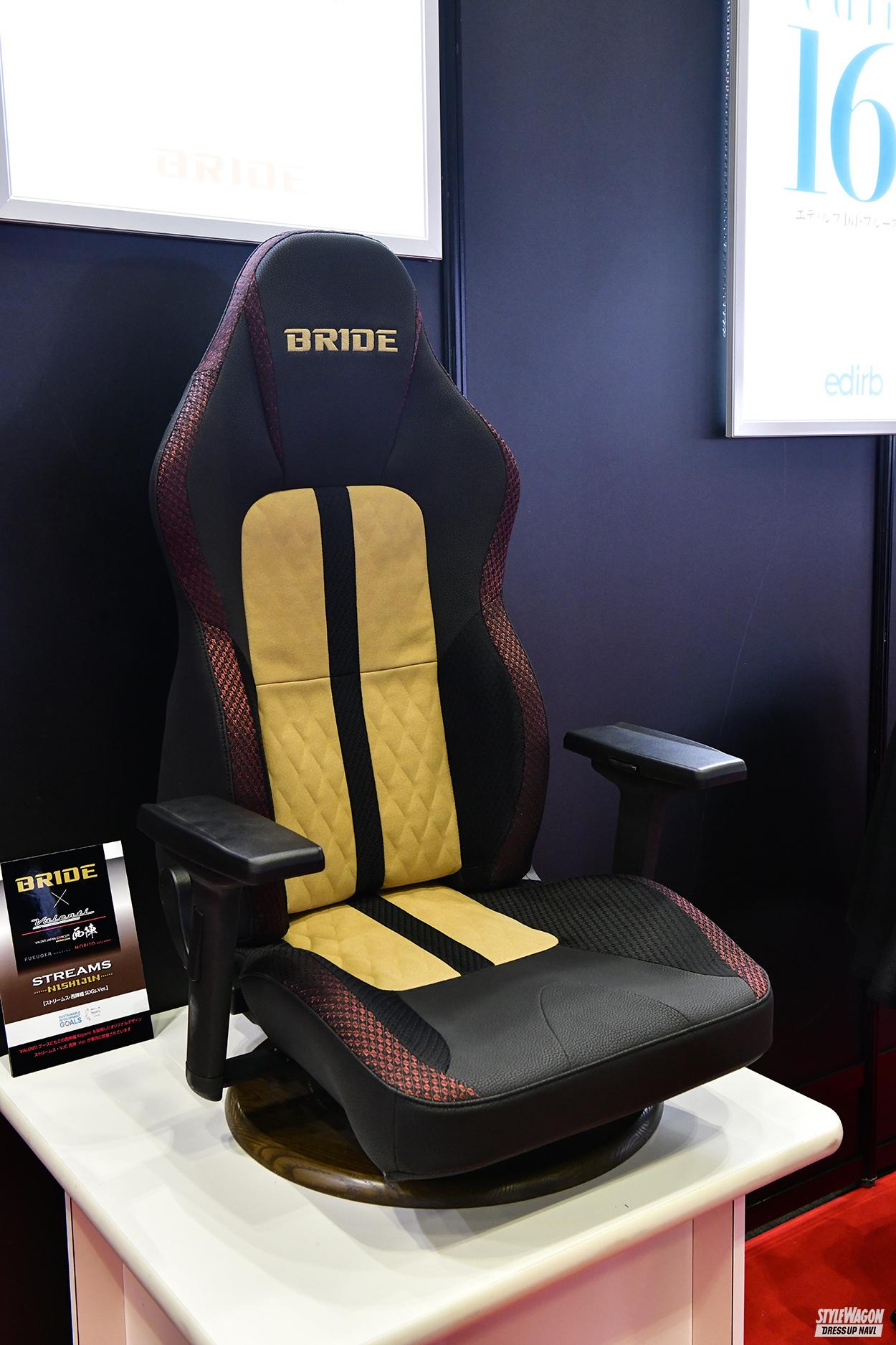 一見、普通のSTREAMSシートに見えるのだが、表皮にはリサイクルペットボトル繊維から、職人の伝統技で織り上げた西陣織の新素材「リペリック」、製造にかかるエネルギーをギリギリまで削減し、脱炭素化に貢献する新素材「ビガプリモ」、帝人フロンティアにより開発されたリサイクル繊維を用いてデザイン的な凹凸を具現化させた不織布などを採用。地球に優しいシートとなっているのだ。現状、使用する素材の関係で、車用ではなく室内向けの椅子として出品されていた。