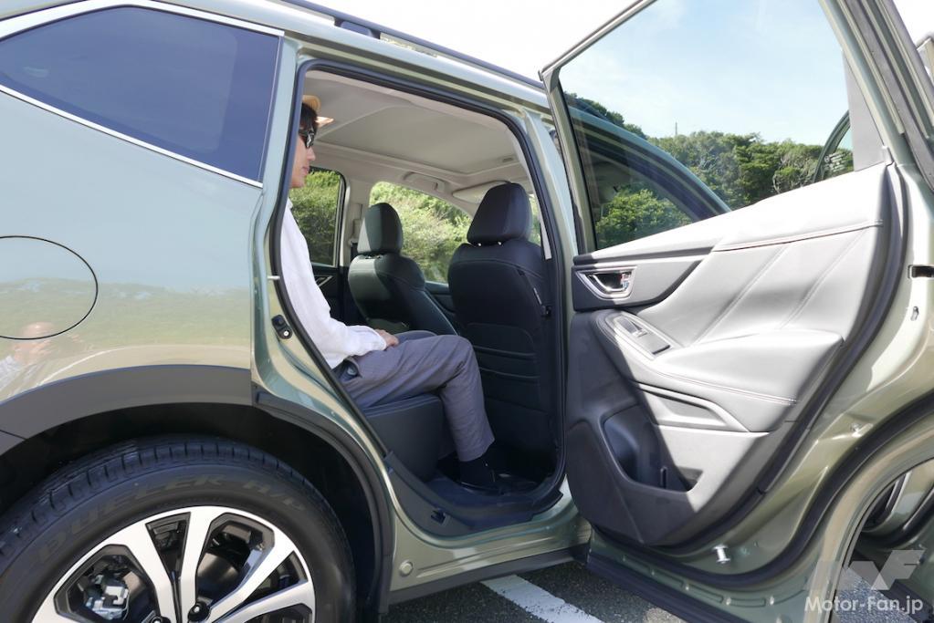 今回は、身長184cm、177cmの男性2名と164cmの女性1名の3人で、実際にフォレスターに乗って(座って)みた。