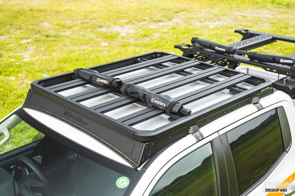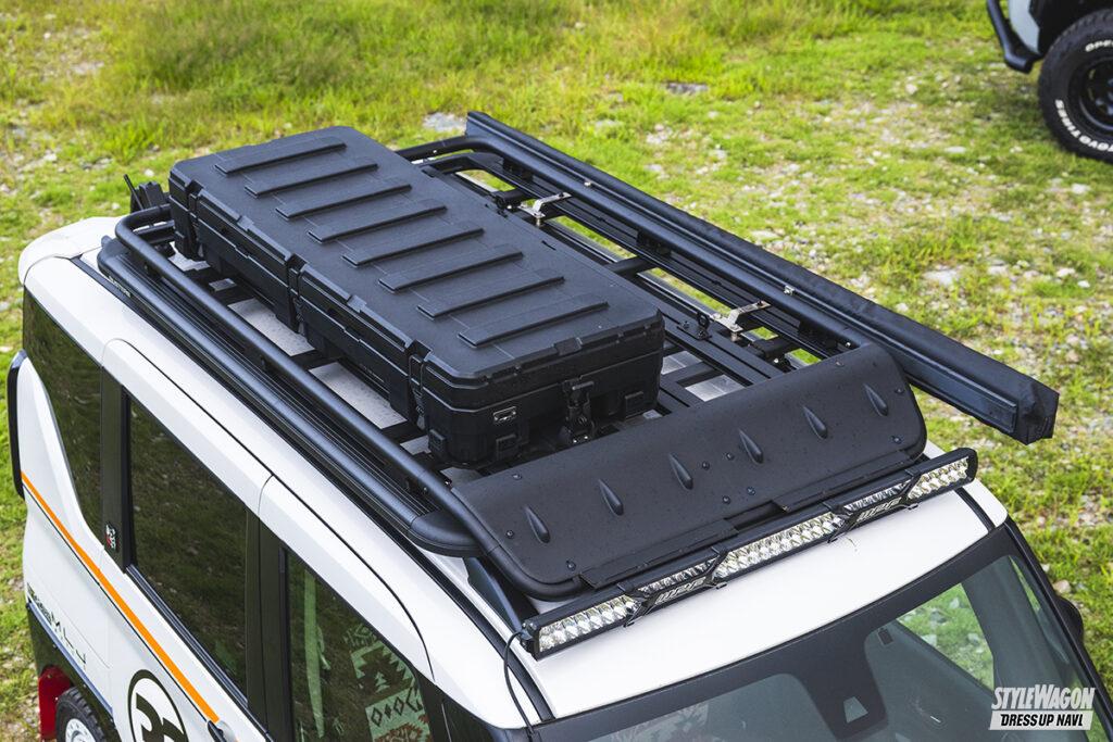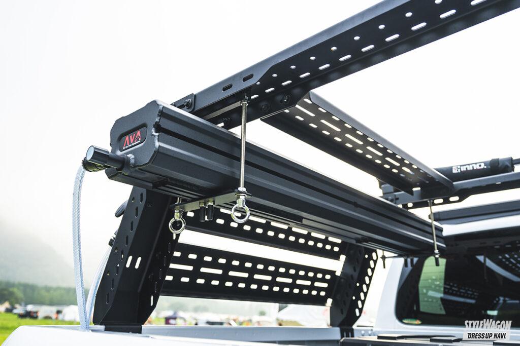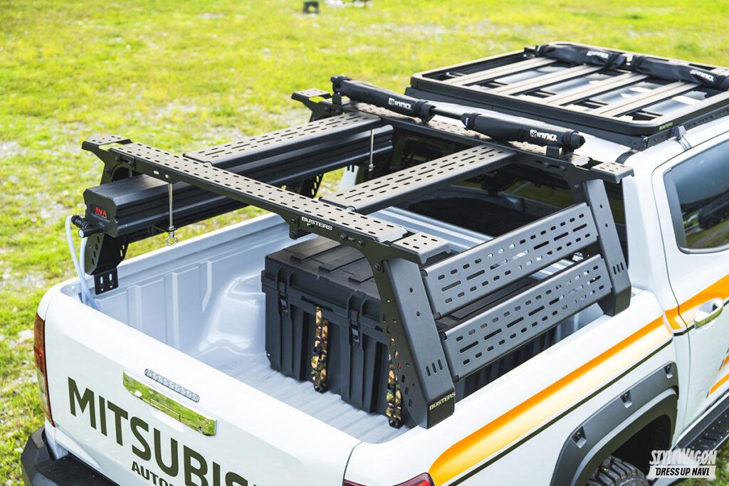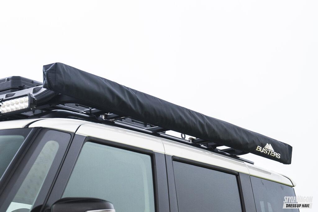 実用性が高く、なおかつオシャレな積載アイテムの開発も進めている。他車種でも人気のバスターズルーフラックは、ボディとの一体感をもたらすスカートを採用。純正ルーフレールを外して装着することで全高を抑えられる。ベッドラックはミッドマウントとハイマウント(写真)の2タイプをリリース予定。