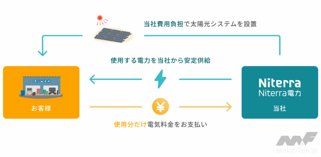 「電力からサステナブルな未来を考える」というコンセプトのもと、Niterra 電力は「グリーン電力の拡大・地産地消=最大活用」を促すソリューションを提供する。具体的には太陽光の PPA (Power Purchase Agreement)、電気小売、および環境価値の証書化と販売を行い、本取り組みから生成される電力、環境価値を最適分配することにより、顧客に対して価値を提供するとともに、結果としてグリーン電力の拡大、活用を促し、サステナブルな社会の実現に寄与する。