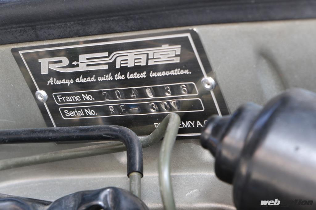 海外へ輸出されるRE雨宮のコンプリートカーには、本物であることを証明するコーションプレートがエンジンルームに貼り付けられる。