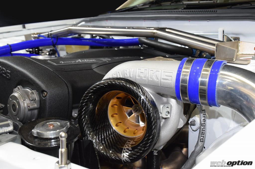 また、心臓部のRB26DETTは、N1ブロックをベースにHKSのキャパシティアップグレードキットstep.2によって2.8Lまで排気量を拡大した上で、GTIII−5Rタービンをドッキング。最高出力は1000psに迫るというモンスターっぷりだ。