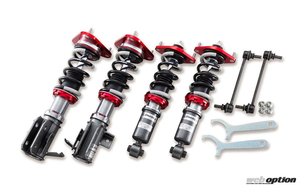 車高調整機能はストロークを維持したまま車高が変えられる全長調整式を採用。スプリングは引っ張り強度2100N/mm2を誇り、軽量化と高耐久性を実現する。GR86/BRZ用のバネレートは前後とも5kg/mmの設定だ。