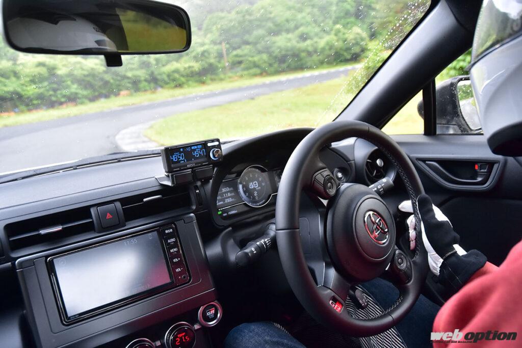 今回は、そんなEDFC5の性能を探るためにエビスサーキット(東コース)でのテストを敢行。車両はGR86で、街乗りからスポーツ走行まで対応する全長調整式の車高調『RX1』がインストールされていた。
