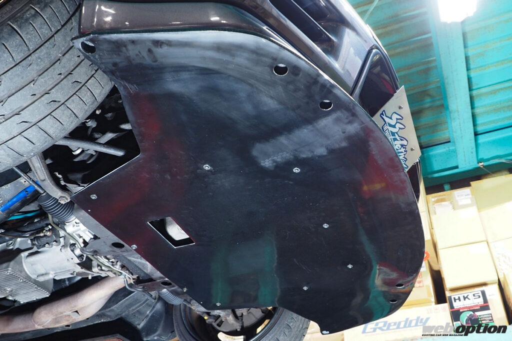 また、取り付けは純正サスメンバーを利用した15点留めという頑強な仕様で、強大なダウンフォースにも完全対応。オイルドレンの位置にはサービスホールが空けられているため、オイル交換時にディフューザーを脱着する必要がないのもポイントだ。