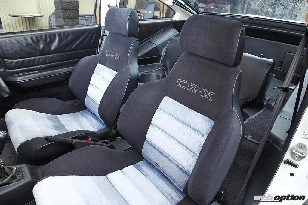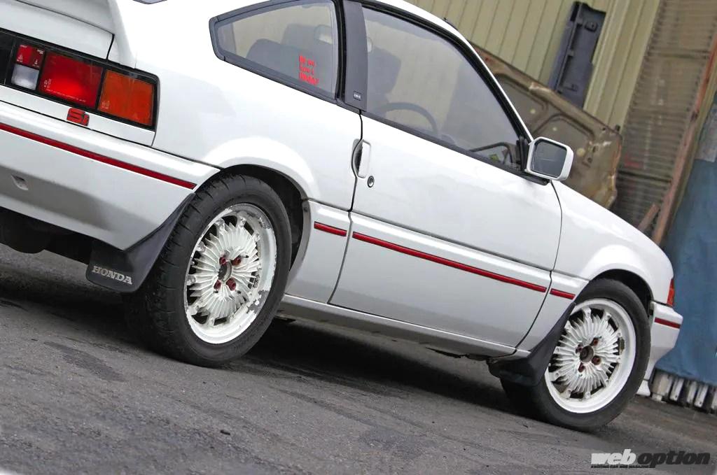 「B型エンジンに載せ換えられないかって、試したこともあったんですけどね。マウントもメンバーも違うし、費用対効果が全然合わない。それでも、860kgの車重と2.2mのショートホイールベースが生み出す走りは楽しいですよ」と古賀さん。そして、このショートホイールベースとファストバックが織りなすサイドビューの美しさも、初代CR-Xの魅力だと語っていた。
