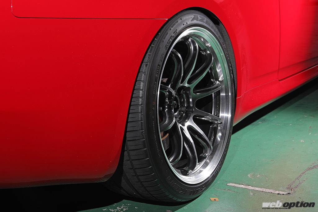 ちなみに、真紅のスカイラインクーペは畑中さんの愛車でありアライメント調整の人柱でもある。車高やツライチ具合を追及しながら、ハンドリングやタイヤのライフなど様々な検証に活用しているそうだ。