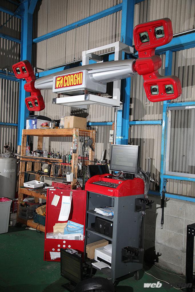 アライメントテスターはコーギー社製を使用。あくまでも数値確認のための必需品ではあるが、ツールよりも経験則に基づく確実な作業が最優先だというのが畑中さんの信条。