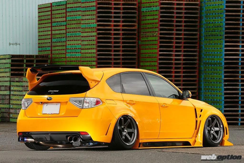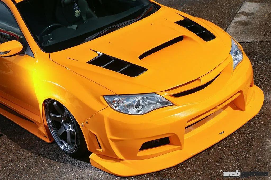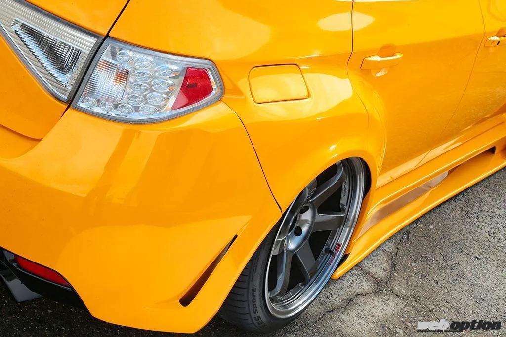 フロントバンパーはエクステンションパーツをスムージング装着する他、ヘッドライトウォッシャーも廃して徹底的にシームレス化。ヘッドライトはインナーメッキ仕様のGHインプレッサ前期用を流用するなど、細かい芸が光る。