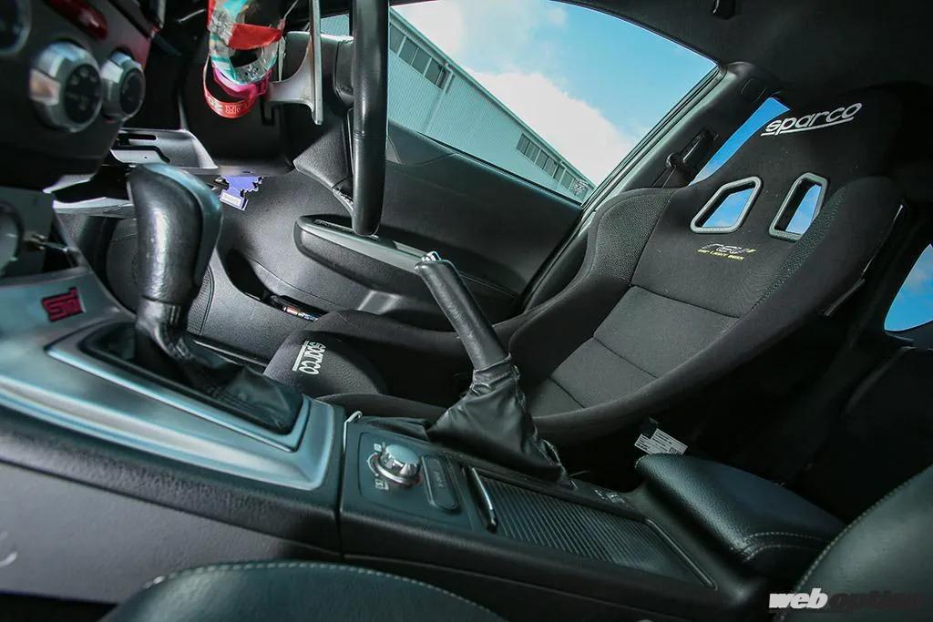 「ATの設定しか無いが、2.5Lで排気量が有利なAラインをMT化した方が面白い」。そんな発想からGRF型インプレッサWRX STIを選択したオーナー。18歳の時に購入した初めてのマイカーだったという。