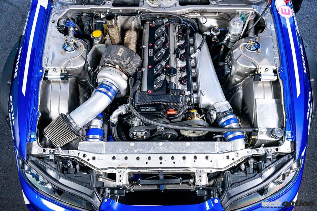 BCの3.4Lストローカーキットを組み込んだ2JZには、2020年の4号機製作の際にアンチラグ導入のためボッシュの電動スロットルを導入した。冷却はリヤラジエター化と燃料にスノコ260GTプラス100%を使用し、トランク内には氷を入れて冷却可能なパーコレーションを防ぐコレクタータンクを配置。