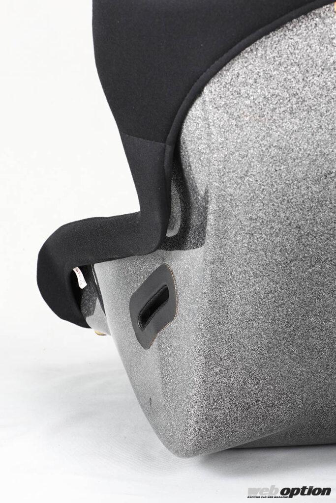 シートベルトホール付近のシェル形状を工夫することで、座面幅を確保して快適性をアップ。また、特殊形状のシェルを新開発してシート剛性も徹底追求している。