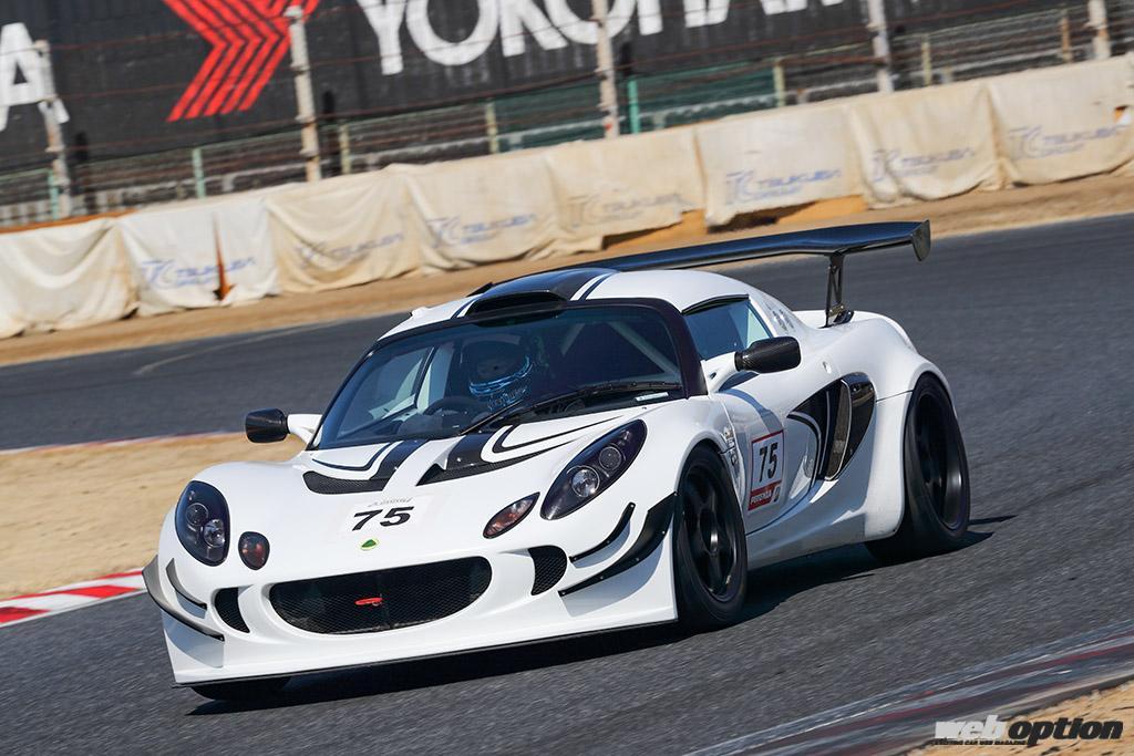 シートはロータス他、ロードスターやKカーなどコクピットが狭い車両に合わせた設計が持ち味のエスケレート製バケットシートを装備。それ以外はノーマルだが、エリーゼ/エキシージはキャビン後方にもともと4点式ロールバーが内蔵され、剛性が確保されている。
