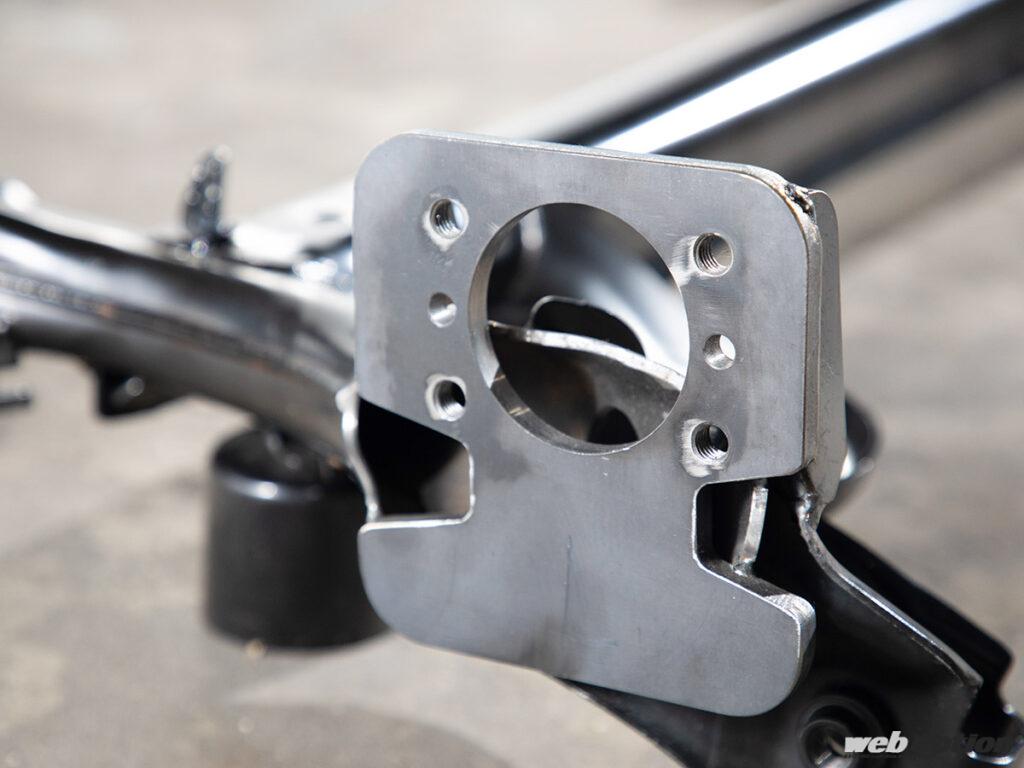 オリジナルのリヤアクスルを装着することで、組み合わせることができるスプリング長も50ミリほど長くできる。ストロークを稼ぐだけでなくダンパーのリバンプも拡大でき、足回りの動きが大幅に改善。テコの原理によってサスペンションの動きもスムーズに変化する。