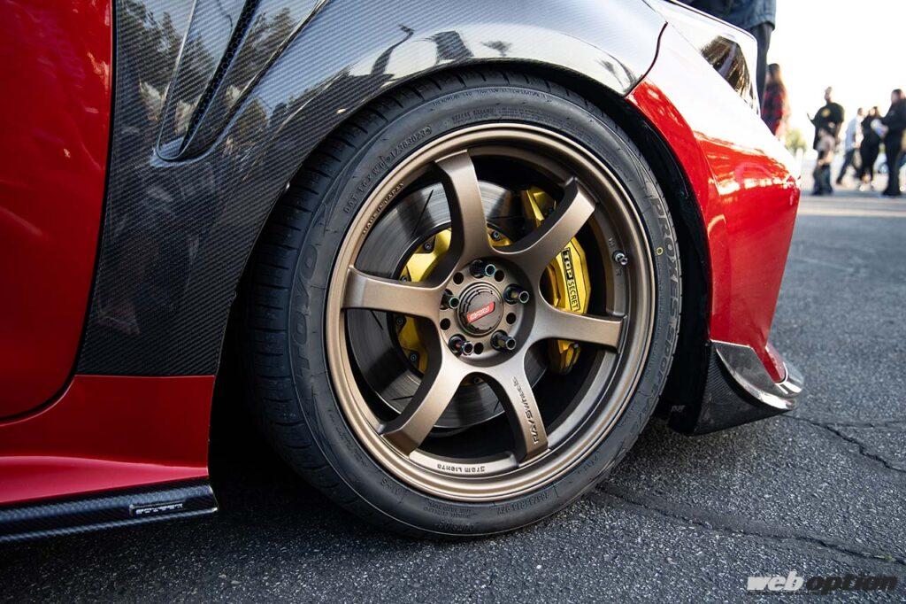 親子でHKSをこよなく愛するアメリカ人オーナーに遭遇。父親の方はアメリカで最初にA90スープラのHKSワイドボディキットを導入した人物なのだが、息子の方は通学に毎日使っているGRカローラをカスタマイズ。カーボンのカバーが備わるコールドエアインテークフルキットの他、カーボン製エンジンカバーやヒューズボックスカバー、スーパーSQVなど、様々なHKS製プロダクトを導入している。