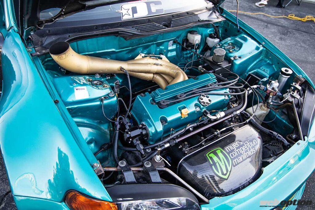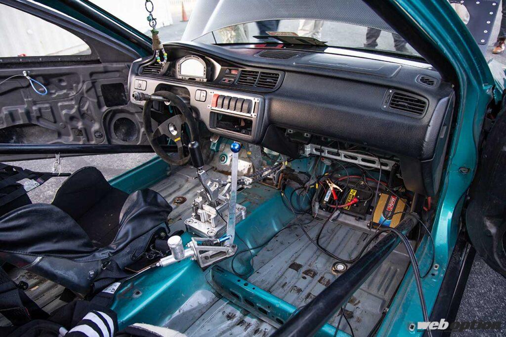 EG6型シビックで1/4マイル9秒台を誇るFFドラッガー。どちらかというと西海岸より東海岸で見かけることが多いパフォーマンス重視型で、エンジンはK20にスワップ。ターボではなく、あくまで自然吸気で勝負しており、エンジンの生み出す力をいかにフロントタイヤに効率よく伝えるかを追求している。