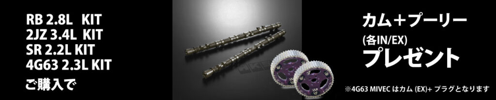 RB26、2JZ、SR20、4G63用のキャパシティアップグレードキットを購入すると、カム&プーリーのセットがプレゼントされる。