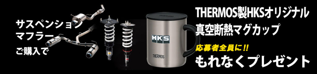 車高調キットもしくはマフラーを購入すると、サーモス製のHKSマグカップがプレゼントされる。