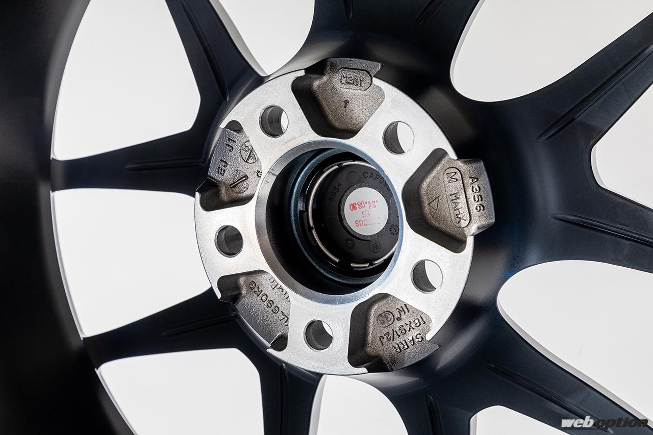 ハブ接合面は妥協のない肉抜き加工が施され、スポーツモデルの運動性能を高めるための軽さも追求。逃げが大きいため、ワイドトレッドスペーサーの使用も問題なしだ。