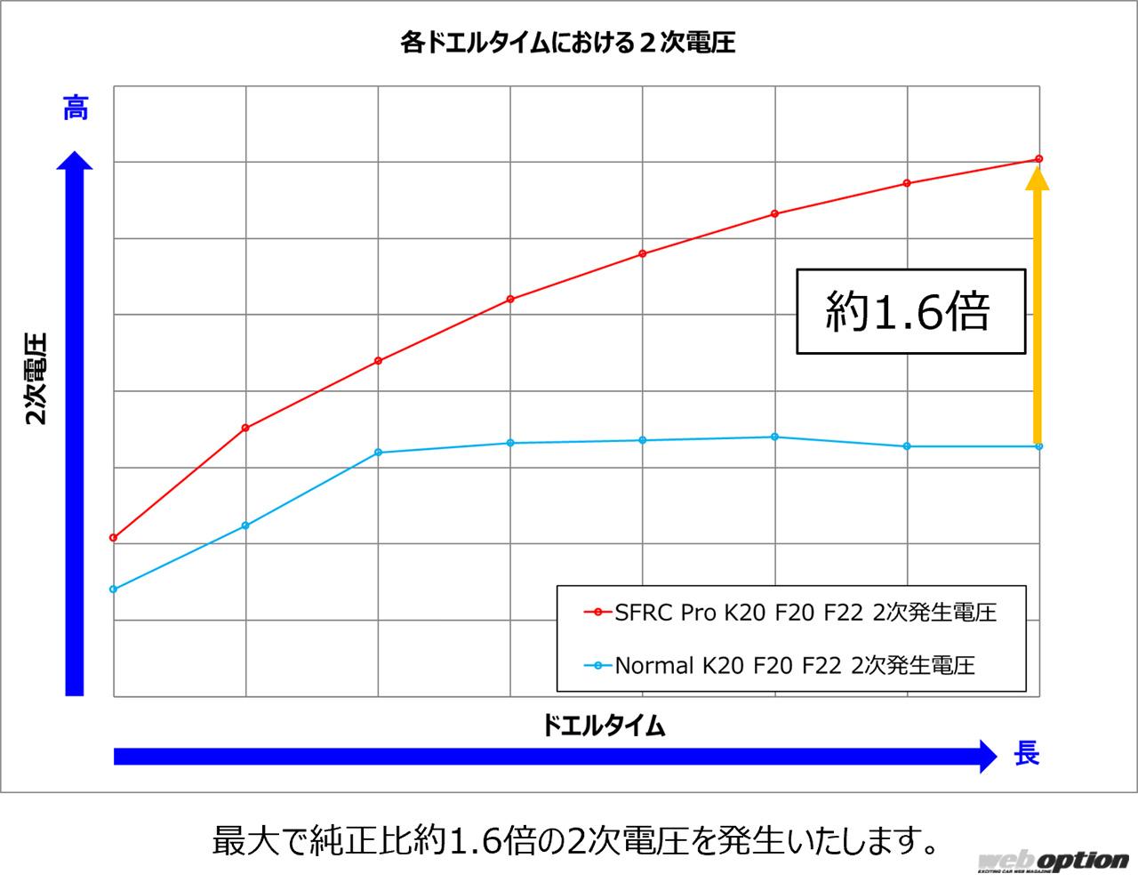 各ドエルタイム(点火コイルへの通電時間)における二次電圧を純正品と比較すると、最大で約1.6倍もの電圧を誇るこのアイテム。HKSの拘りは凄まじく、イグニッションコイル(国内製)は熱源から遠ざけるためにブラケット上部へと搭載位置を変更しつつ、ハーネスも専用開発品したほどだ。