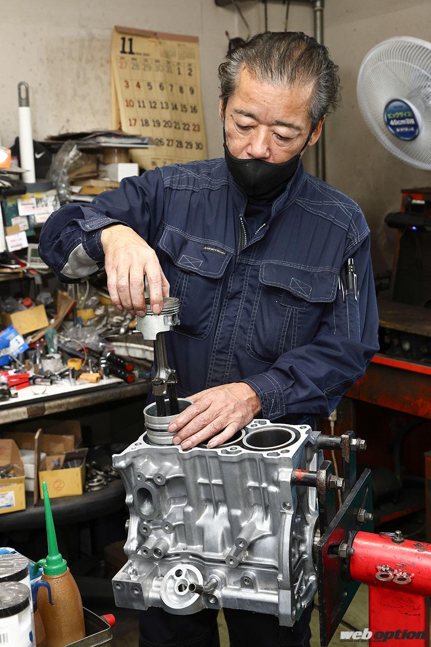 2サイクル時代からの幅広いスズキ車用エンジンに対応しているが、メインとなっているのはF6AとK6Aターボで、最近はR06のオーダーも増えてきた。このクラフトマンエンジンには「スタンダード」と「タフ」の2タイプを設定。点検と洗浄、ウェットブラスト処理されたベースエンジンに、オリジナルの0.1mmオーバーサイズピストンを組み込んだシリンダーブロックは共通仕様。タフエンジンでは、ヘッドのポート加工とメタルヘッドガスケットなどが追加となる。