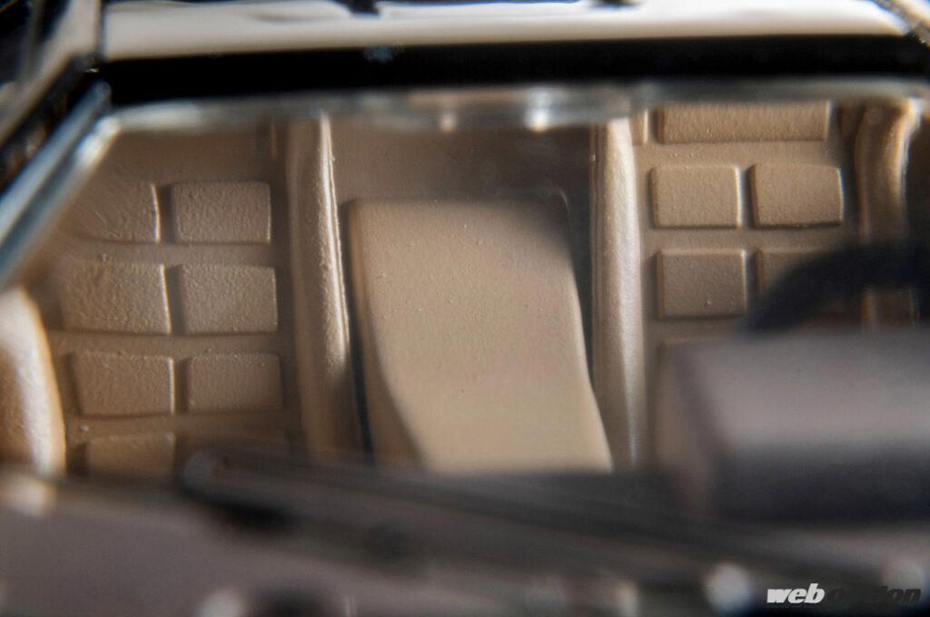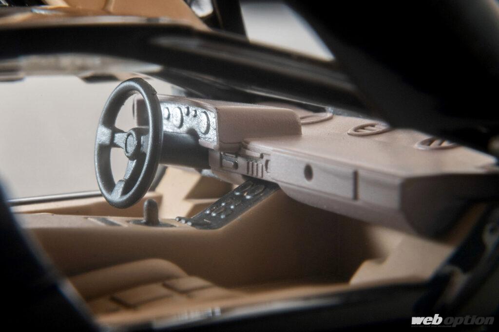 これまでも好評を博してきたトミーテックのカウンタックLP400。今回追加されたのは、ブラックボディとタン内装のシックなモデル。トミーテックらしい忠実なエクステリアの再現度のみならず、本製品はドア&エンジンフードの開閉機構、内部の造形まで堪能できる。1/64スケールとは思えない作り込みは驚異的だ。