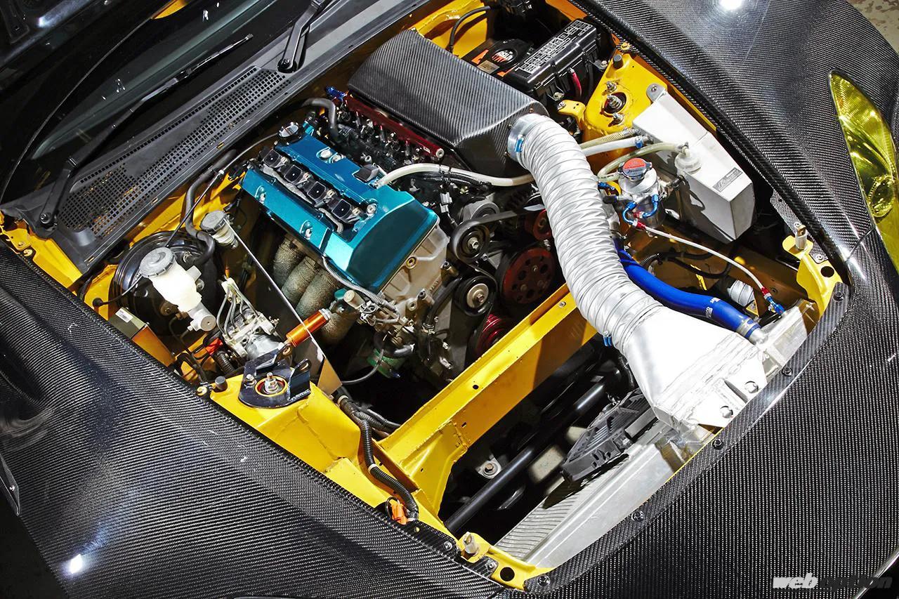エンジンはF22Cをベースに戸田レーシングの2.4Lキットを組み込み、ジェイズレーシングでヘッドのフルチューンを行ったコンプリートモデル。戸田の4連スロットルと組み合わせにより、NAながら320psのピークパワーを発生する。