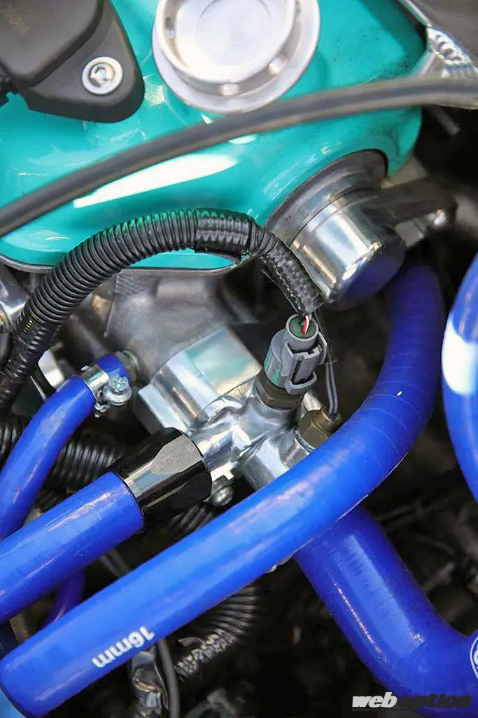 エンジンマネージメントはEMSフルコンを使用。シンプルな車体ということもあって、コンピュータもコストパフォーマンスを優先したモデルをチョイスしているとのこと。