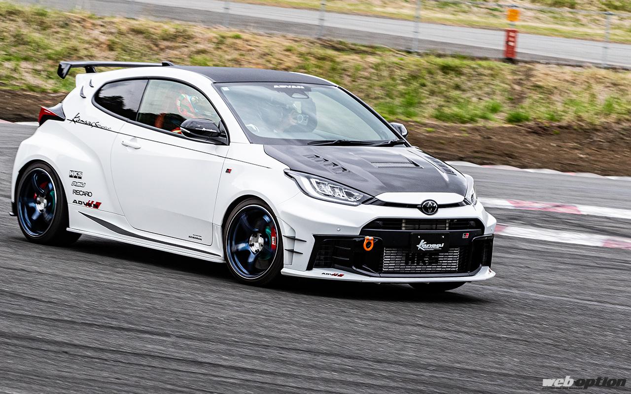 名門チューナー“カンサイサービス”は、最新ストリートチューンドの素晴らしさを一人でも多くのユーザーに味わってもらおうと、熟成を進めているマイナーチェンジ後のGRヤリス(ATモデル)を持ち込んだ。