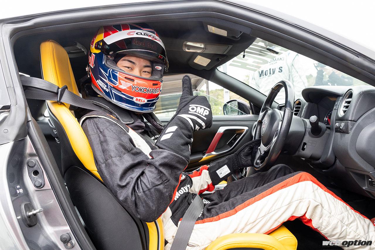 ドリフトのキャリアは約10年を数え、現在は国内外を問わず競技ドリフトの最前線で活躍する箕輪選手だが、年齢は15歳で高校1年生になったばかり!! もちろん運転免許が取得できる年齢ではないため、ドリフトの腕前は超一流でもまだまだ色々なクルマに乗るという経験値は少ないはず…!? そこでウェブオプションでは、今後の糧にしてもらうべく厳選した2台のマシンに試乗する枠を特別に用意させてもらった。