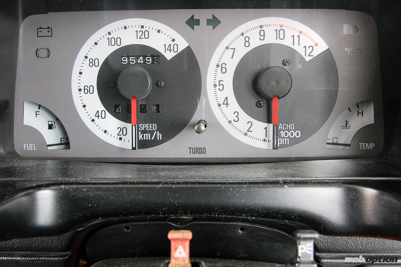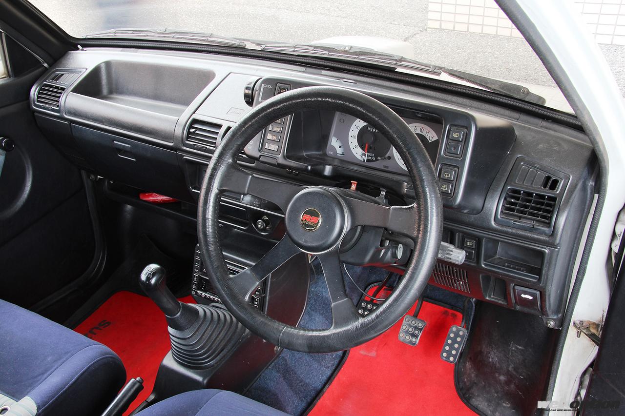 取材車両は1987年8月以降の後期型なのでメーターパネルが黒/白、スピードメーターも140km/hフルスケールを採用。前期型は赤パネルで120km/hフルスケールとなる。