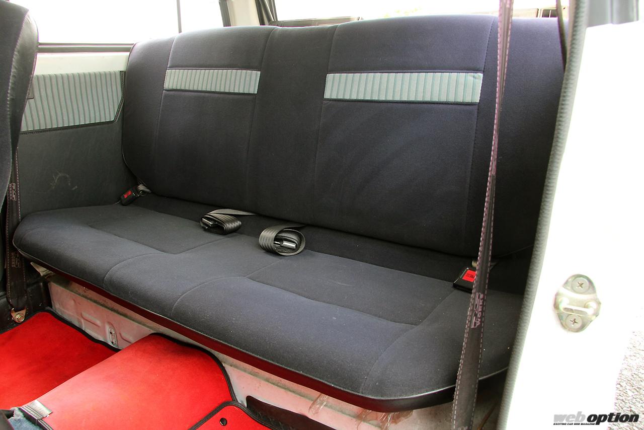 4ナンバー車だけに後席のスペースはミニマムで、背もたれも短く立ち気味。大人が長時間乗るには厳しい。背もたれは一体で倒すことができ、ラゲッジスペースを拡大することが可能だ。