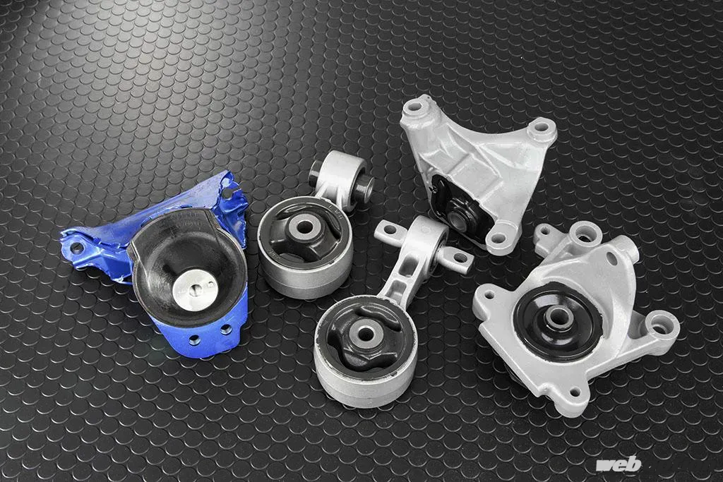 エンジンマウントはオリジナルの強化品を投入。これは、隙間に樹脂や硬質ゴムを流し込んで強化を図る一般的な工法ではなく、イチから材質を見直して製作したスペシャル。ノーマル比150%ほどの硬質化が図られていて、コーナーの進入でもヨレやタワミをしっかり抑え、高い接地性を与えてくれる。