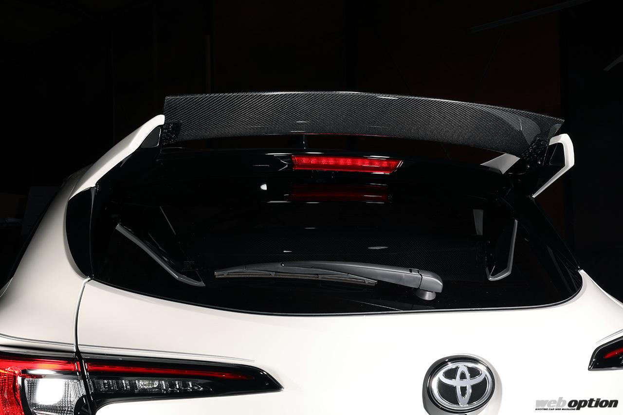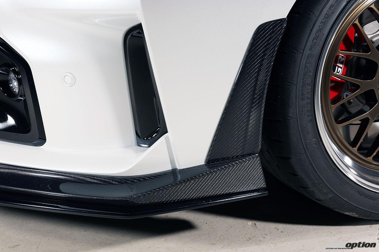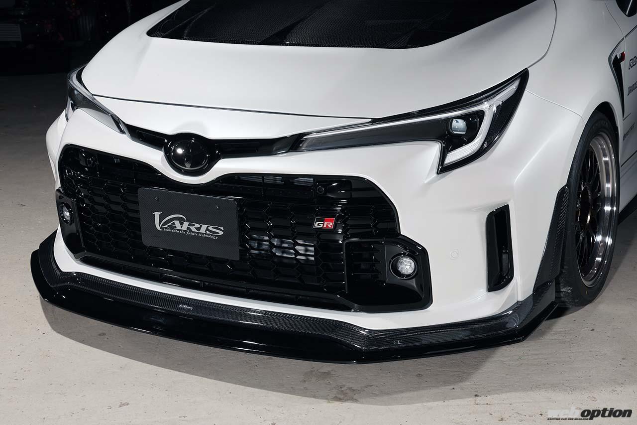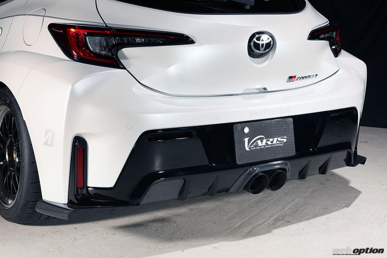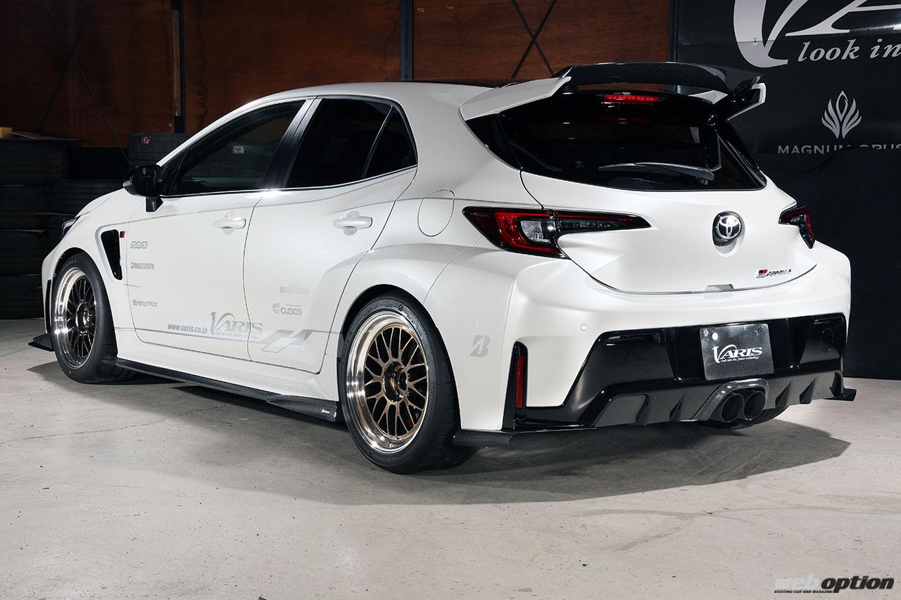 エクステンションリップの追加により、さらなる躍動感を手に入れたバリスGRカローラ・アライジング1。GRカローラが持つマッシブなスタイルを活かしつつ、スポーティさを高めるラインナップは、全オーナー必見だ。