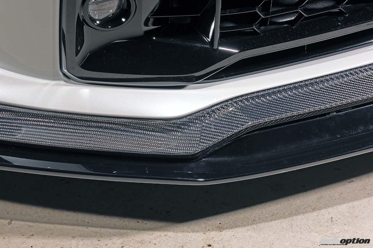 センター付近のボリューム感に対してサイド部分ではこのように張り出しが抑えられているため、ベースとなるアライジング1フロントスポイラーと美しく調和。段差などを乗り越えるときも斜めにアプローチすればクリアしやすい。バンパー脇に装着するフロントタービュレーター(7万7000円)との相性ももちろんパーフェクトだ。