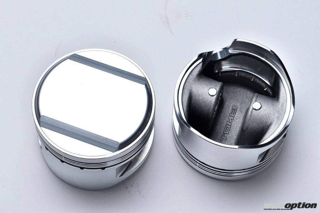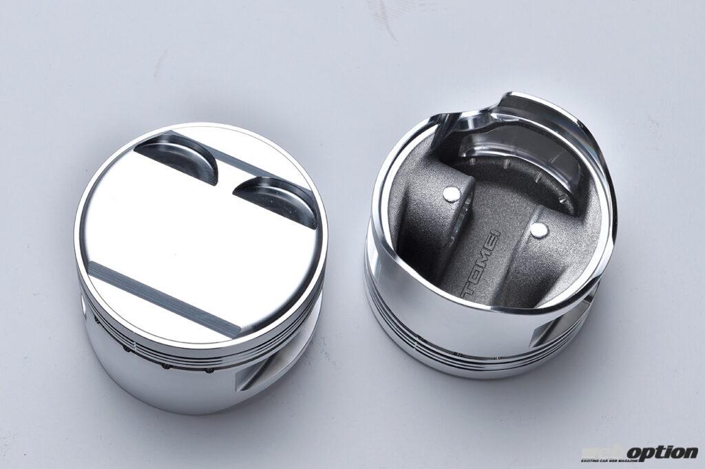 ER34やWGNC34、C35に搭載されるNEO6のオーバーサイズピストンも設定。サイズは86.5φと87φの2タイプ。パワーアップの他、補修ニーズにもバッチリと対応する。