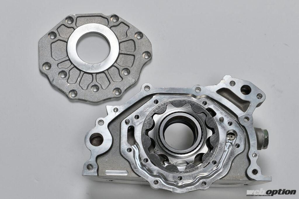 高回転&高出力仕様のRB26は純正オイルポンプの吐出量や吐出圧力により油圧がドロップし、メタル焼き付きのトラブルを引き起こすことも。また純正ポンプギヤが破損し、エンジン全損というケースも珍しくはない。東名パワードのオイルポンプは3分割構造のクロモリ製大径ギヤや高強度ギヤカバーを採用。高負荷時も安定したオイル供給を実現する。オイルパン脱着なしで油圧調整が可能なのも特徴だ。RB20やRB25にも適合。