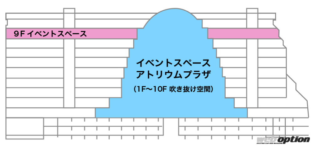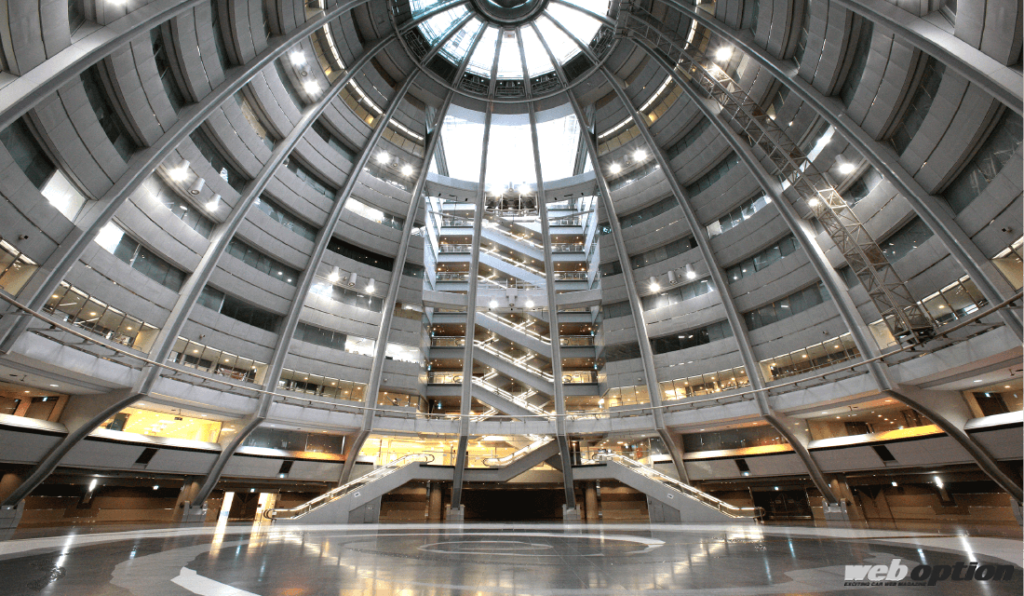 近未来的な吹き抜けの大空間でカーショーも可能!