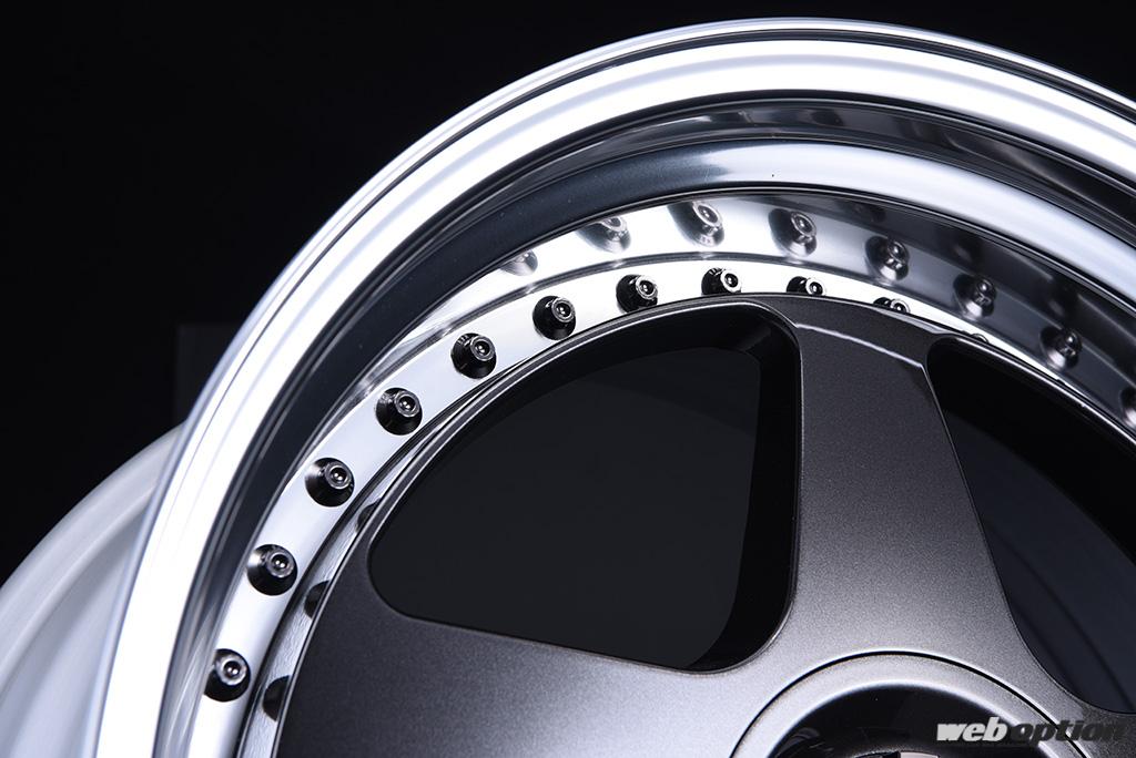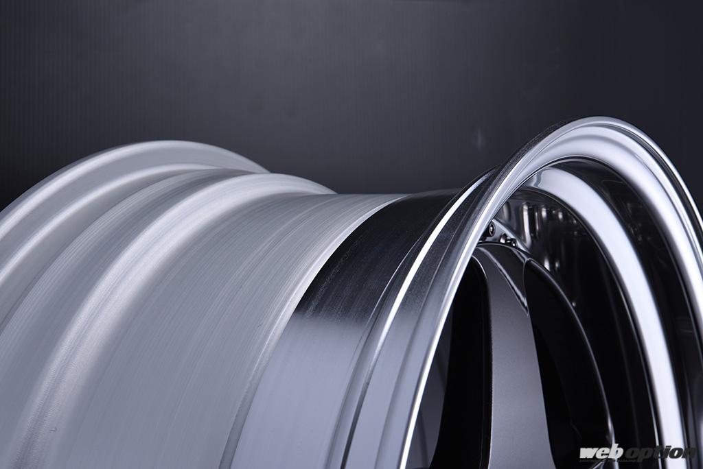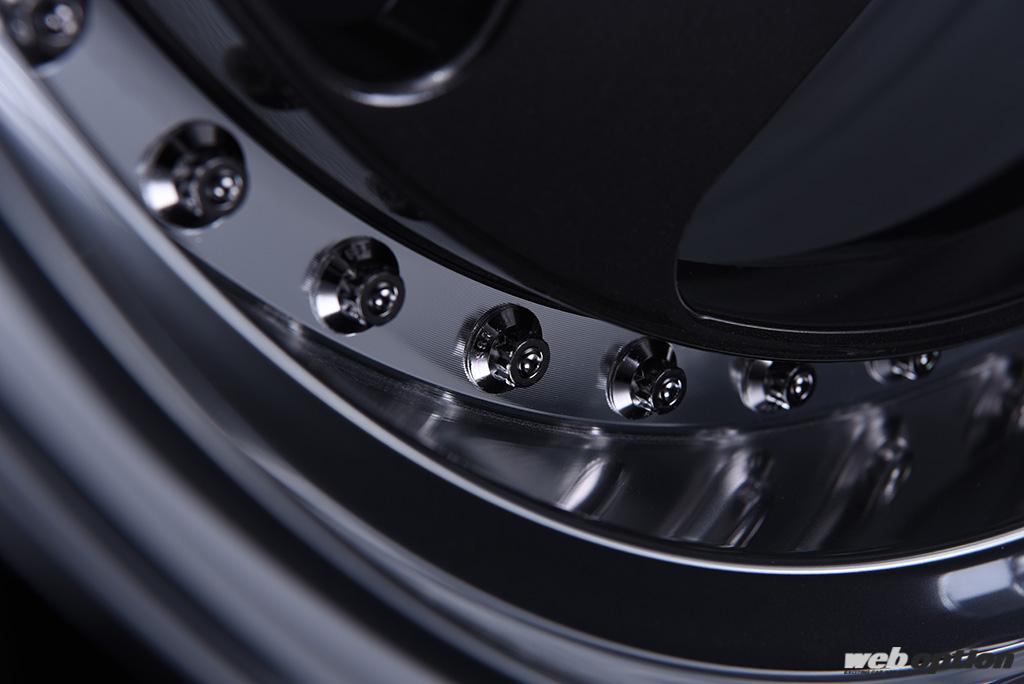 モデル名に冠された“アンダー”という言葉は、ホイールの組み方に由来するものである。3ピース構造は、アウターリムにディスクを組み付け、その上からピアスボルトで固定するというのが一般的だ。しかし、このSP6アンダーはインナーリム側からディスクを組み付ける「アンダーヘッド構造」を採用。これにより、アウターリムがディスクで隠れることがなく、リムの深さを最大限アピールすることができるのである。