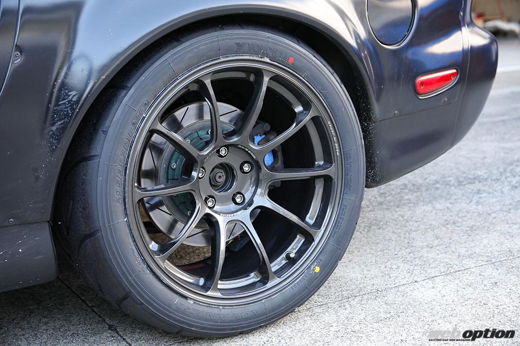 ブレーキは重量増加を嫌ってFD3S純正(17インチ)をキープ。今後、キャパシティ不足を感じたら交換することになるだろう。