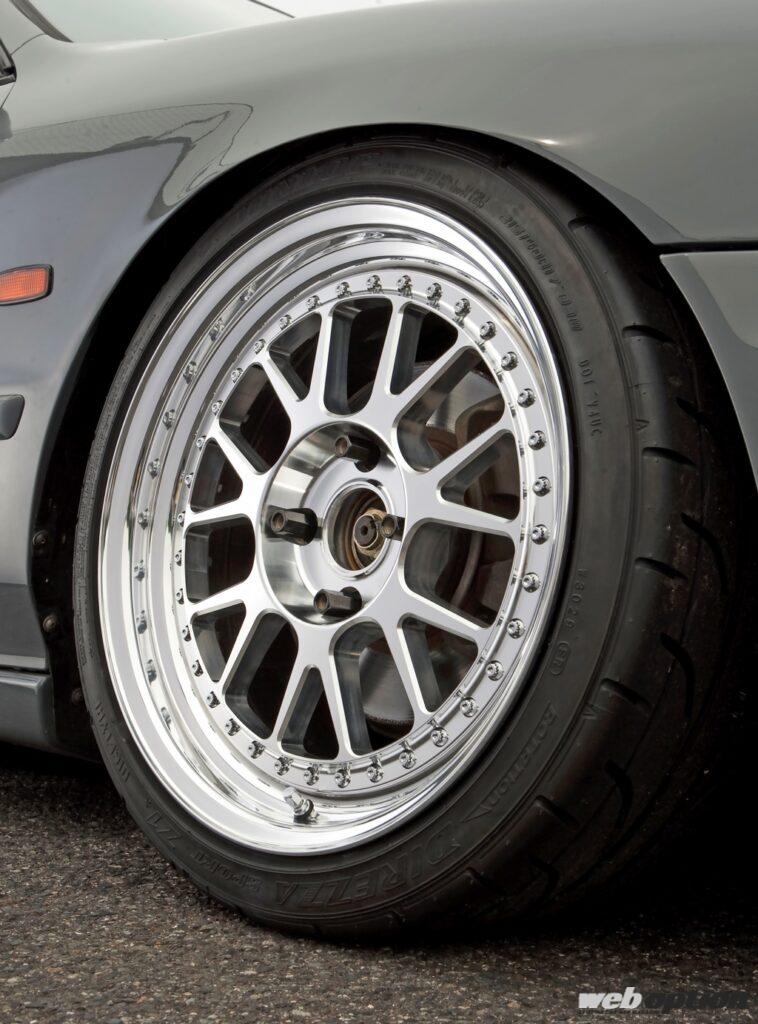 組み合わせるホイールはBMDのsnook。全体はあえて飾り気のない質素な雰囲気にしつつ、ホイールで個性を主張するあたりは上級者のホンダカスタムと言った印象だ。サイズは前後とも17×8J+28。フロント側はフェンダーを片側15mmほど叩き出してインストールしている。