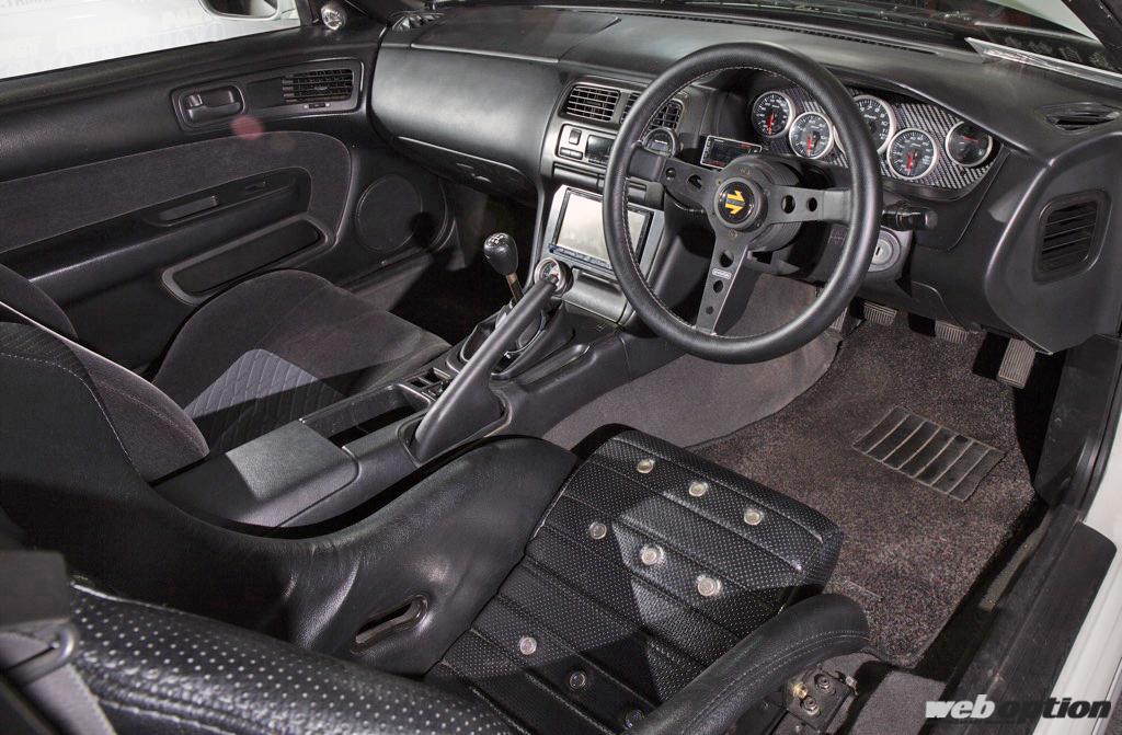 ベースになっているのは、S14後期Q’sのATモデル。そこにバルクヘッドを加工することなくスマートに直6のL28を換装している。なお、フロント周りの重量増はSR20DEと比べても20kg程度とのことで、ハンドリングへの影響はほとんどないそうだ。